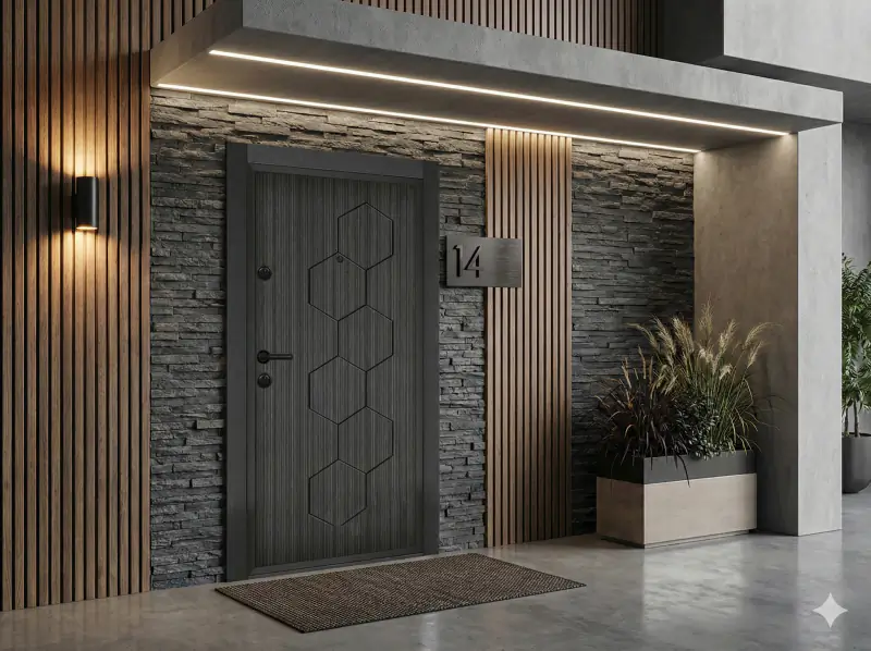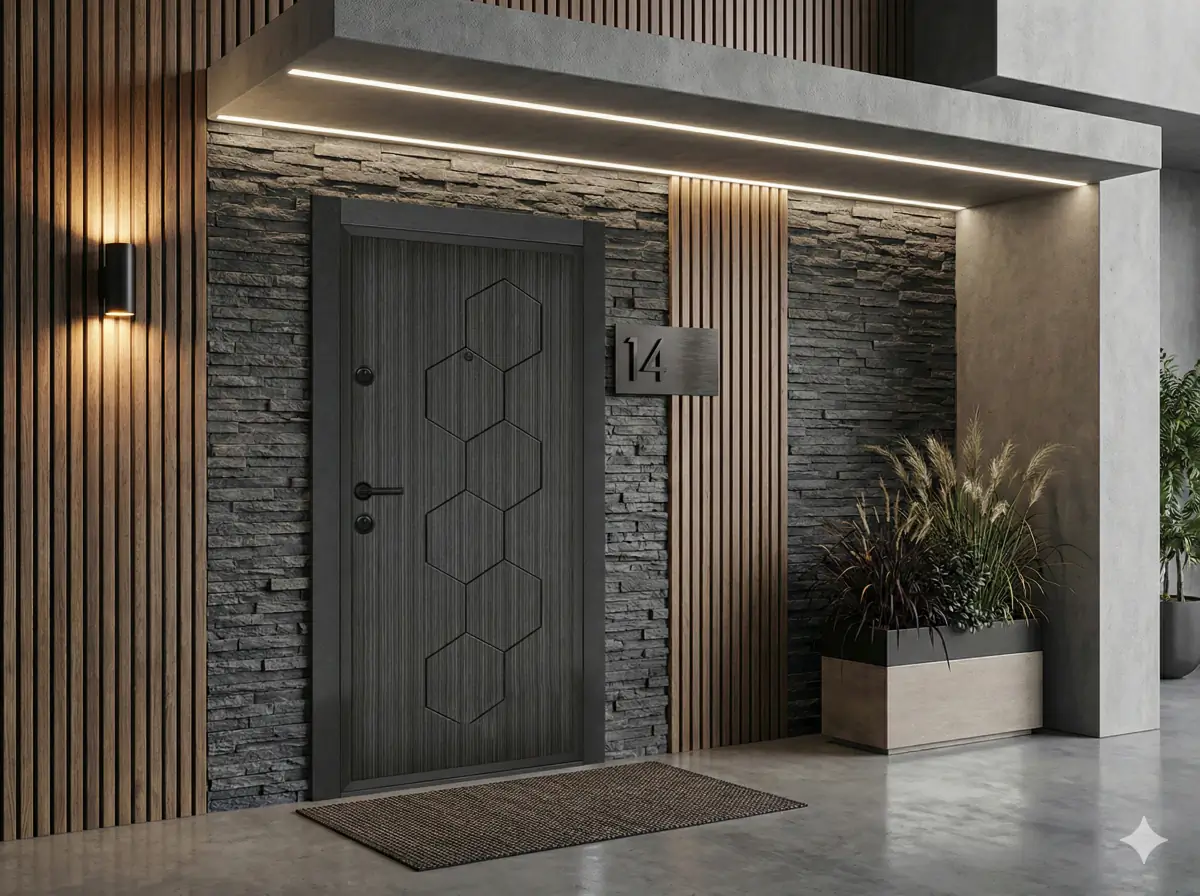 Съвременните блиндирани врати могат да изглеждат елегантно и стилно — с модели в цвят антрацит, дървесен декор, металическо или матово покритие.
