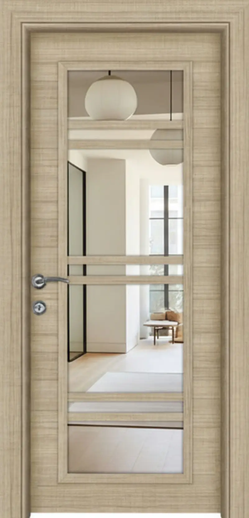 Интериорната врата FR MR 07 е функционално и съвременно решение, което съчетава изчистен дизайн и практичност. Вграденото двустранно огледало визуално разширява пространството и прави модела отличен избор за коридори, спални и гардеробни помещения.