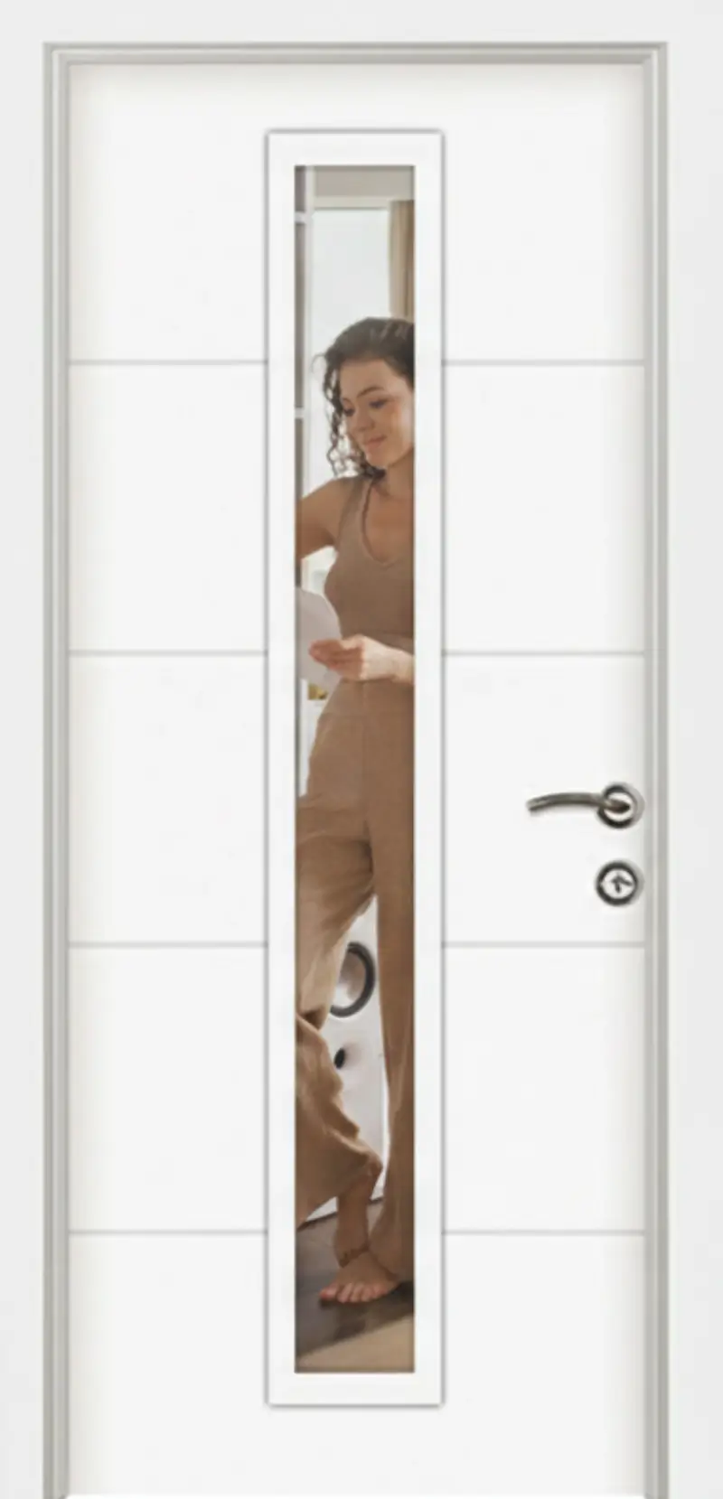 Интериорната врата FR MR 1-3 е функционално и съвременно решение, което съчетава изчистен дизайн и практичност. Вграденото двустранно огледало визуално разширява пространството и прави модела отличен избор за коридори, спални и гардеробни помещения.