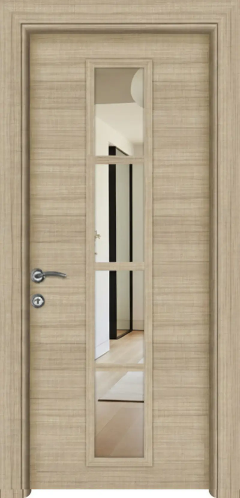 Интериорната врата FR MR 1-4 е функционално и съвременно решение, което съчетава изчистен дизайн и практичност. Вграденото двустранно огледало визуално разширява пространството и прави модела отличен избор за коридори, спални и гардеробни помещения.