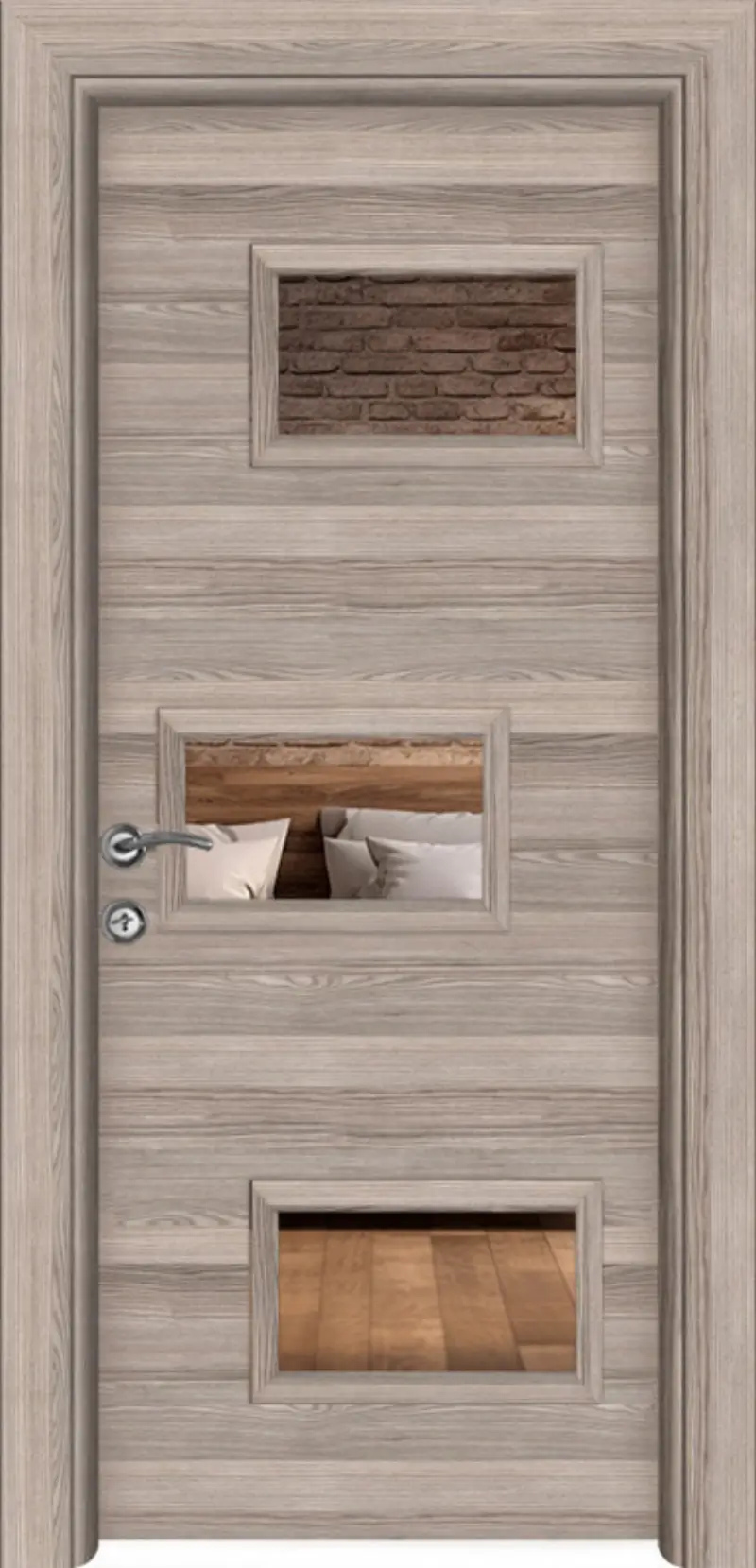 Интериорната врата FR MR 22 е елегантно и функционално решение, което съчетава модерен дизайн и практичност. Благодарение на вграденото двустранно огледало, моделът визуално разширява пространството и е изключително подходящ за коридори, спални и гардеробни помещения.