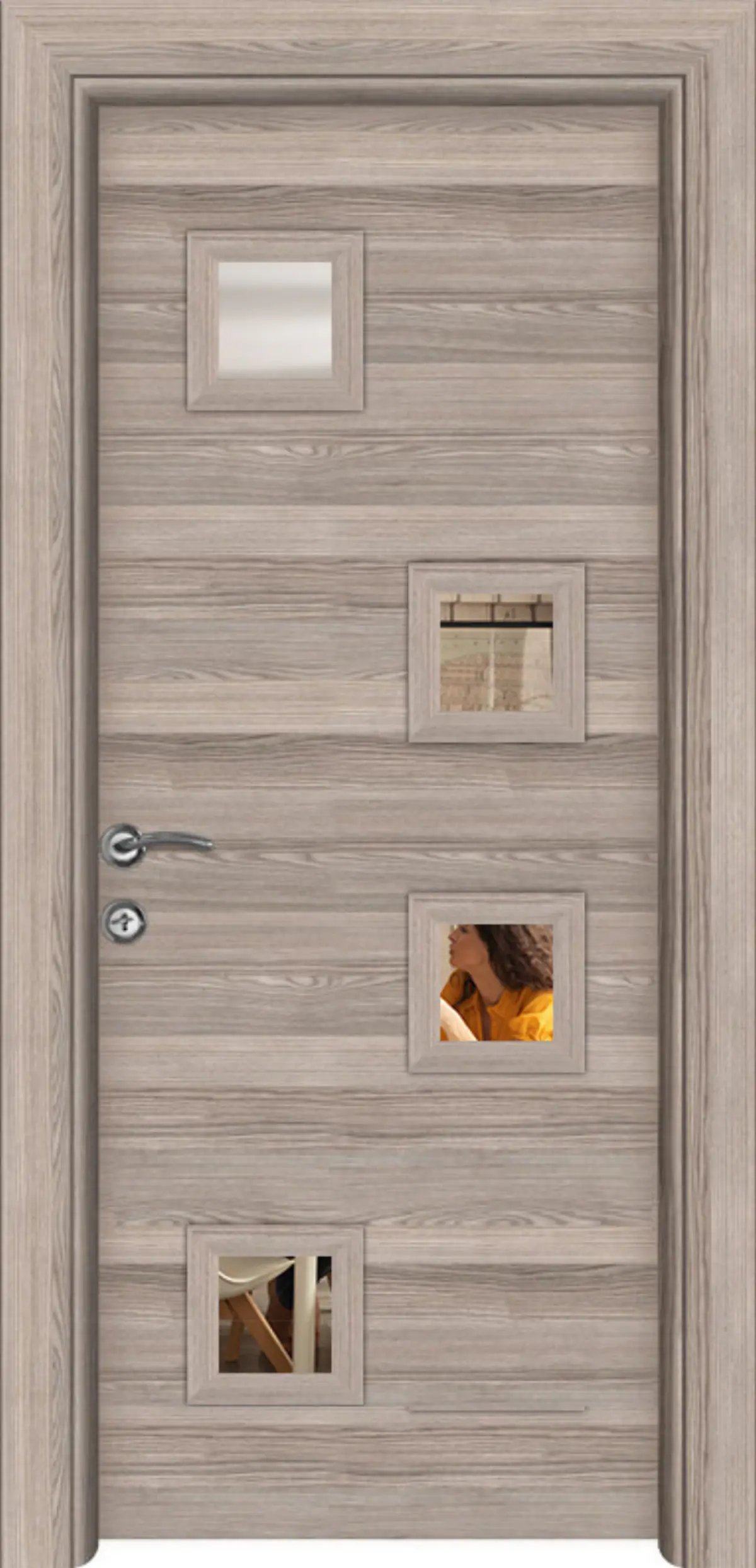 Интериорната врата FR MR 4-1 е функционално и съвременно решение, което съчетава изчистен дизайн и практичност. Благодарение на вграденото двустранно огледало, моделът визуално разширява пространството и е отличен избор за коридори, спални и гардеробни помещения.