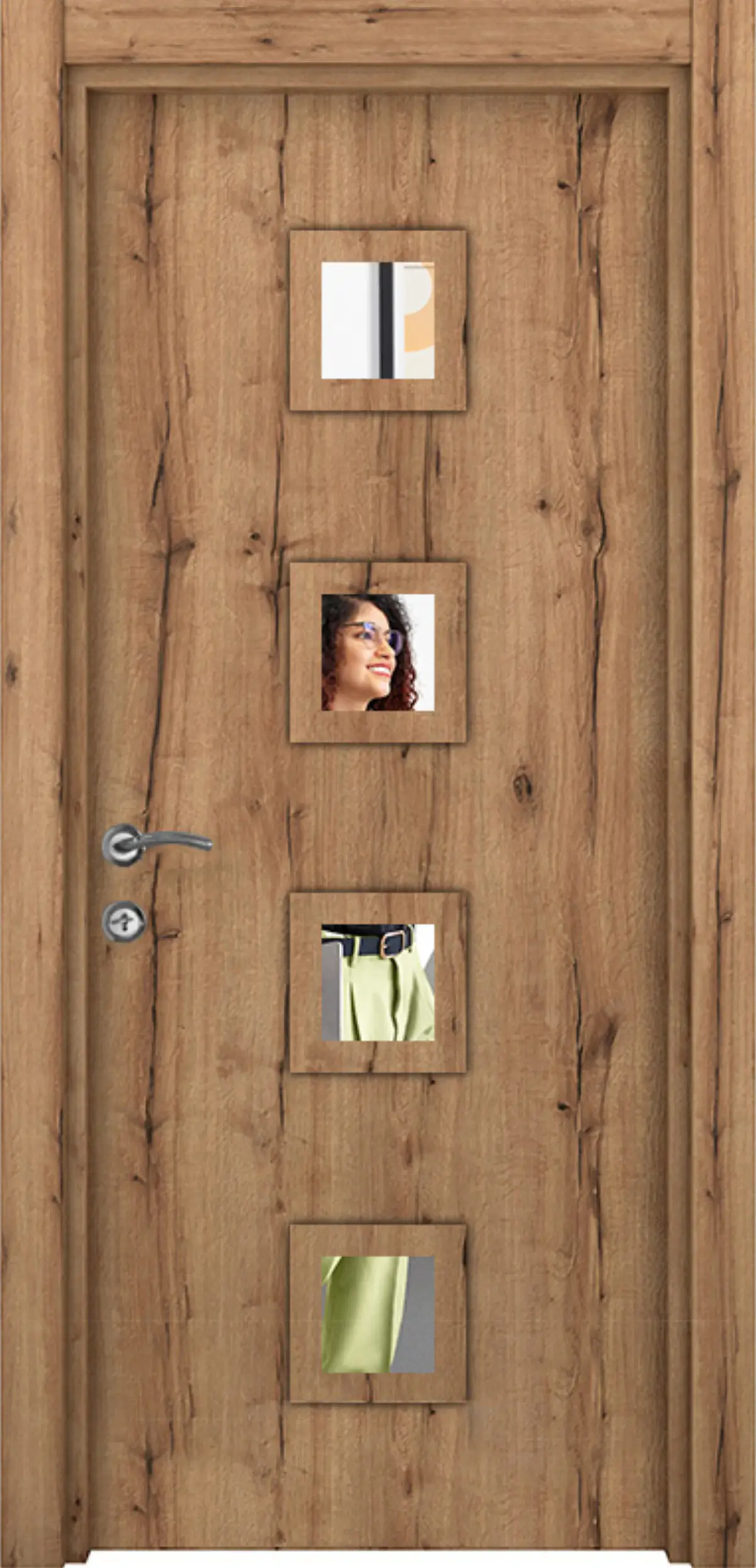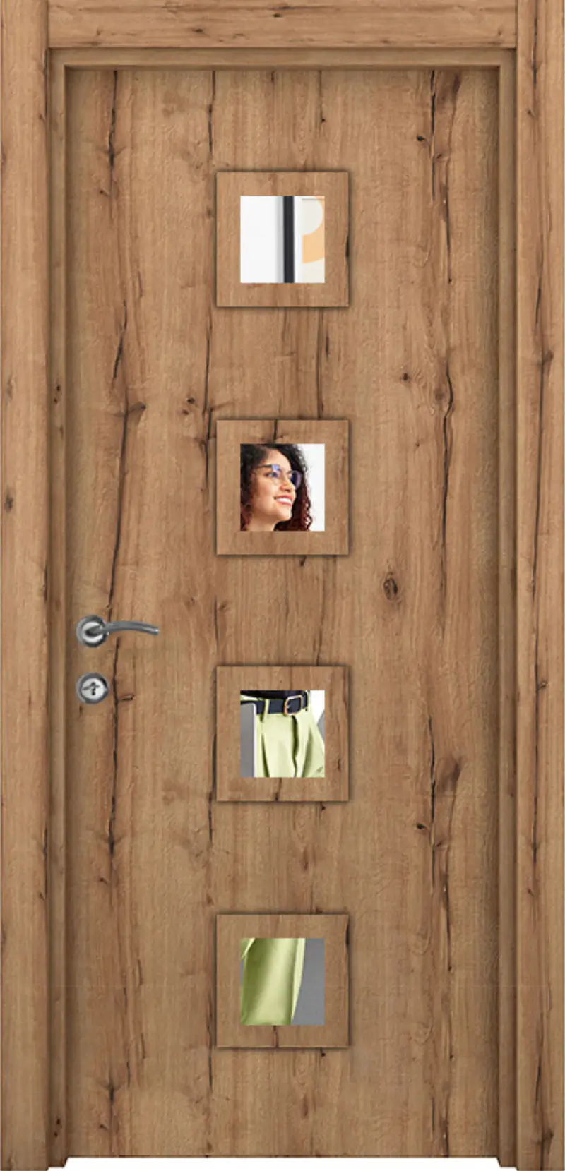 Интериорната врата FR MR 4-3 е функционално и съвременно решение, което съчетава изчистен дизайн и практичност. Вграденото двустранно огледало визуално разширява пространството и прави модела отличен избор за коридори, спални и гардеробни помещения.