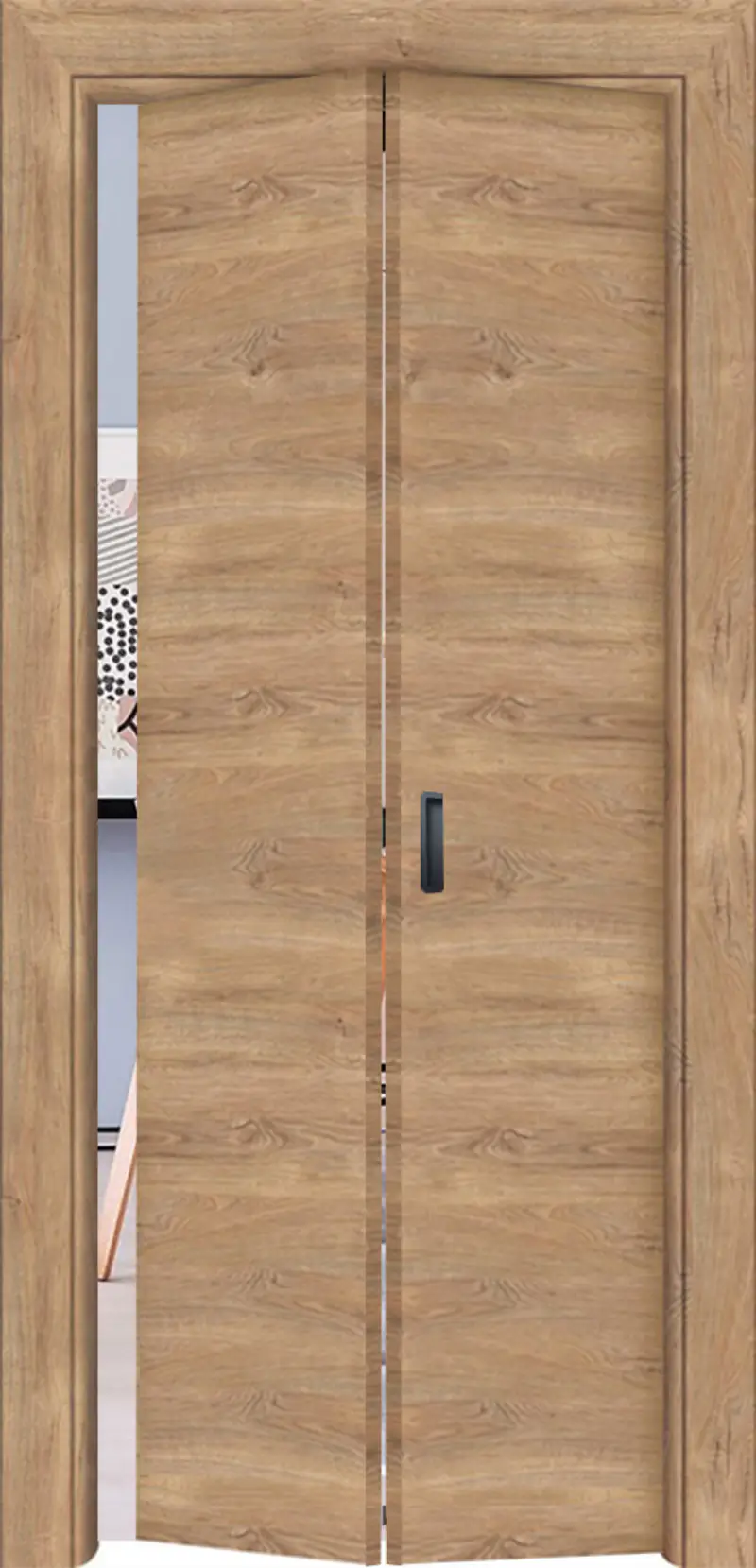 Чупещата интериорна врата Hint Mese е практично и функционално решение, подходящо за пространства, в които е необходимо оптимално използване на наличната площ. Моделът съчетава естествен дървесен декор с надеждна конструкция и удобство при ежедневна употреба.