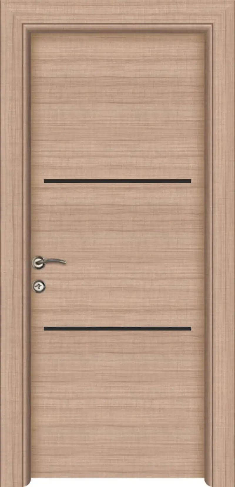 Крилото на интериорната врата Line 07 е изработено от плътен HDF / MDF (High Density Fiberboard) – материал, произведен от естествени дървесни частици чрез сухо горещо пресоване. HDF / MDF се отличава с висока плътност, здравина и устойчивост във времето, което гарантира надеждност, стабилност и дълъг експлоатационен живот.
