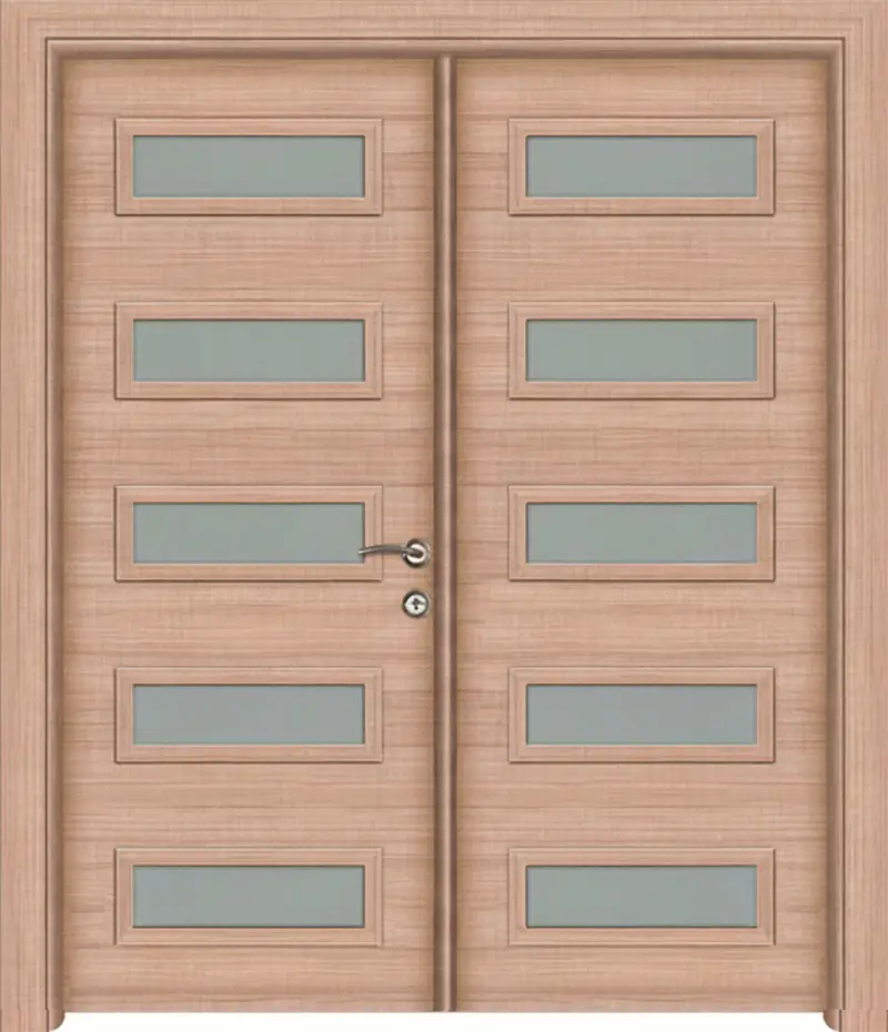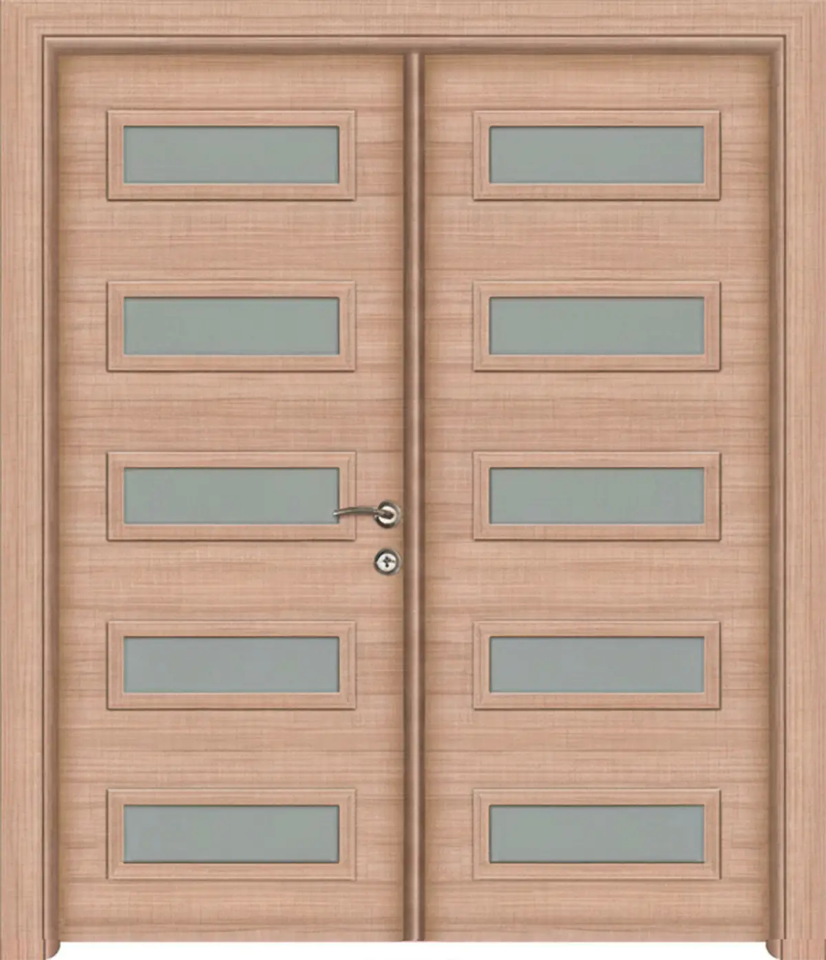 Елегантна интериорна портална врата с модерна хоризонтална визия и правоъгълни остъкления, осигуряваща светлина, стил и баланс във всяко жилищно пространство. Подходяща за дневни, коридори и помещения, където е желана визуална свързаност и изискан дизайн.