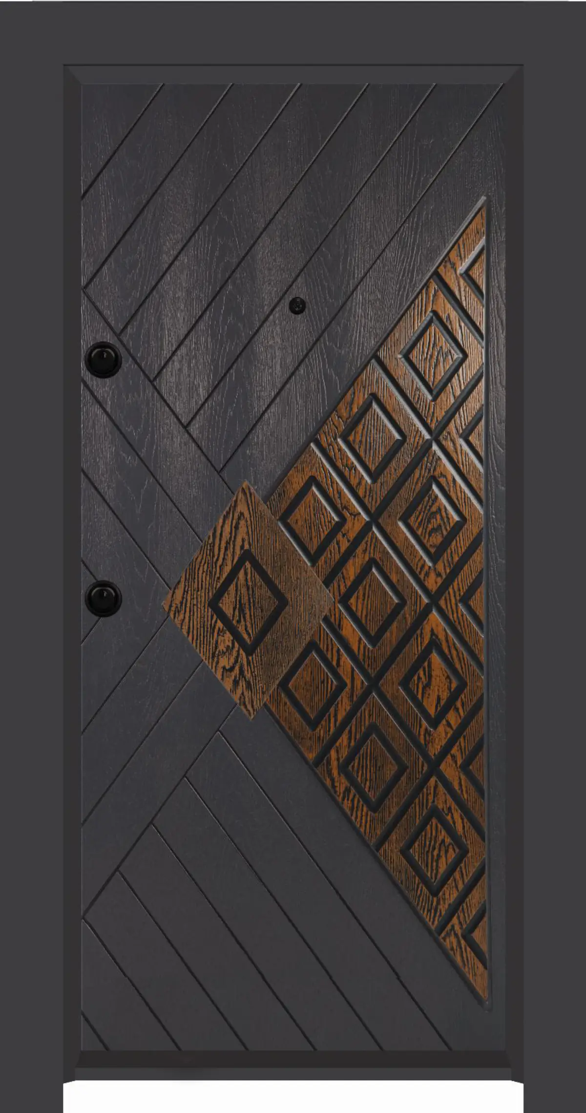 Модерен антрацитен дизайн с шарка Сарухан, осигуряваща висока устойчивост на външни атмосферни условия и надеждна защита. Подходяща за къщи, вили и външни входове.