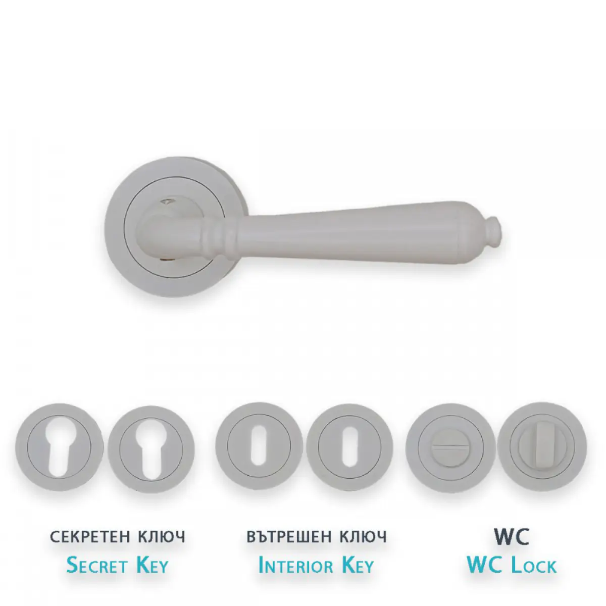 Моделът се отличава с изчистен дизайн и се предлага в пълна гама от розетки, което позволява окомплектоване на всички врати в един стил: