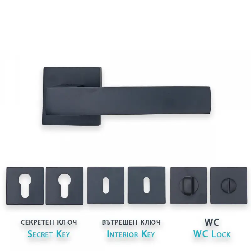 - Черна Дръжка IVENTO – Алуминиева Дръжка на Розетка за Интериорни и Екстериорни Врати