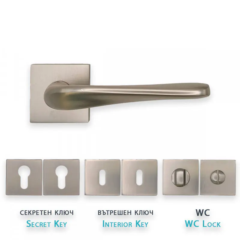 Моделът се предлага в пълна гама от розетки, което позволява окомплектоване на всички врати в един стил, но с различни заключващи механизми: