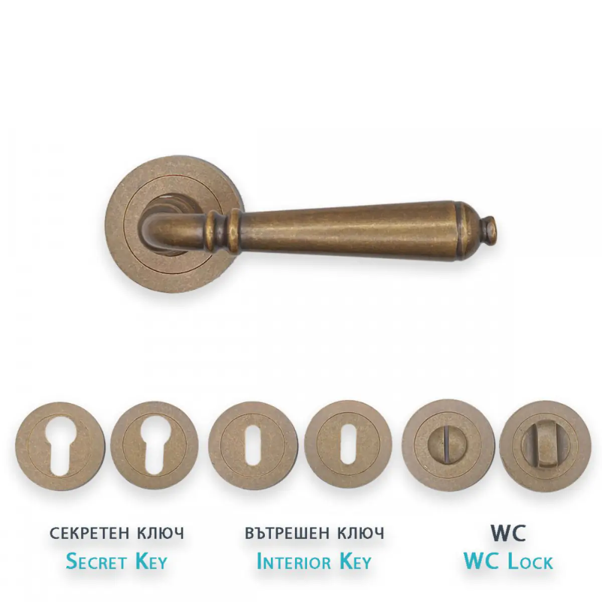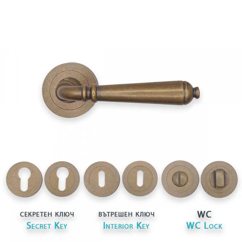 Моделът се предлага с пълна гама от розетки, което позволява унифициран стил на всички врати в имота: