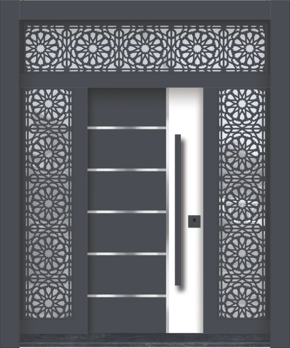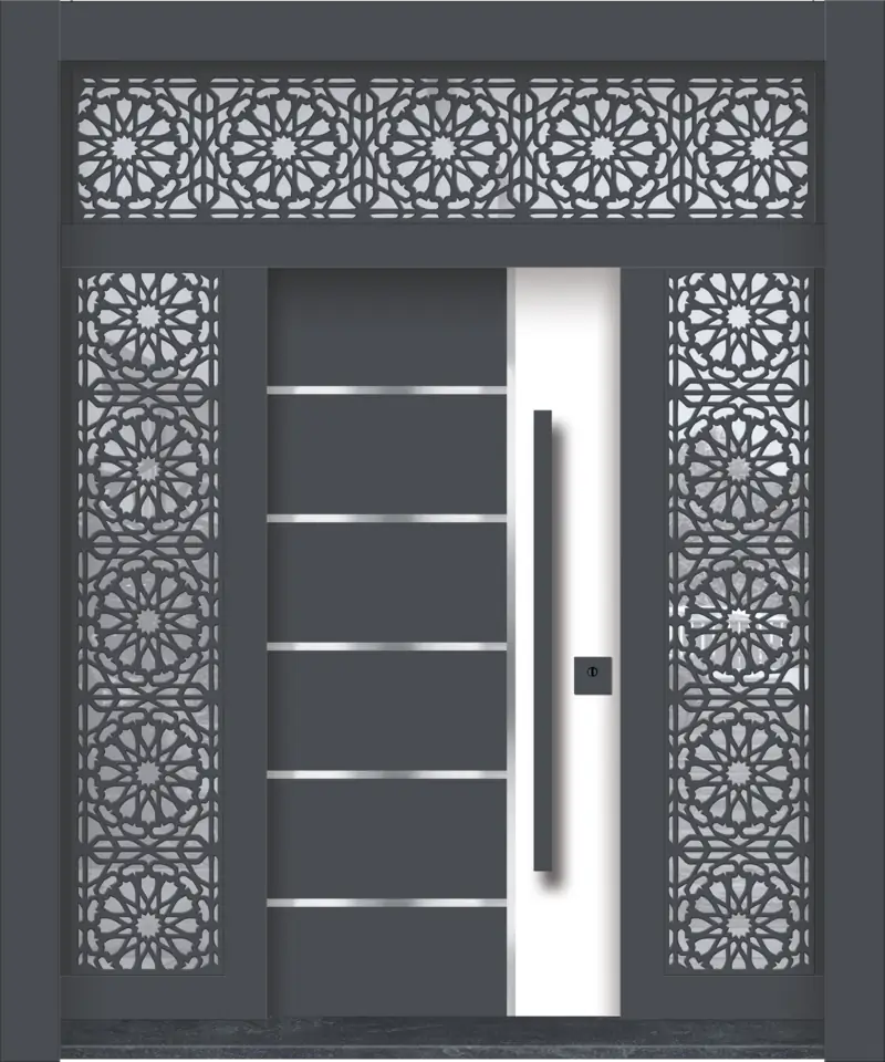 Издръжлива външна врата, проектирана да устои на външни атмосферни условия като дъжд, слънце и вятър. Подходяща за жилищни и търговски сгради, осигурява надеждност, стабилност и стилна визия.