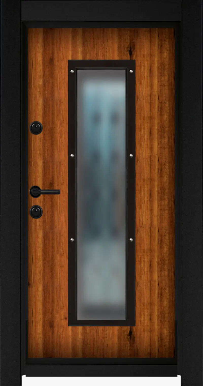 Стилен дизайн със стъклен елемент и висока устойчивост на атмосферни влияния. Подходяща за къщи, вили и външни входове под директно външно въздействие.