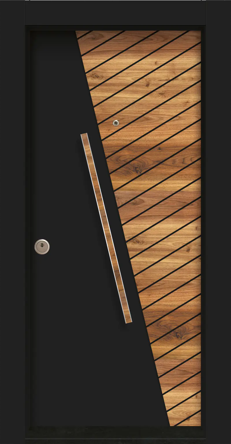 Конструкцията е стоманена с висок клас противовзломна защита — подходяща за модерни жилища и престижни бизнес обекти.
