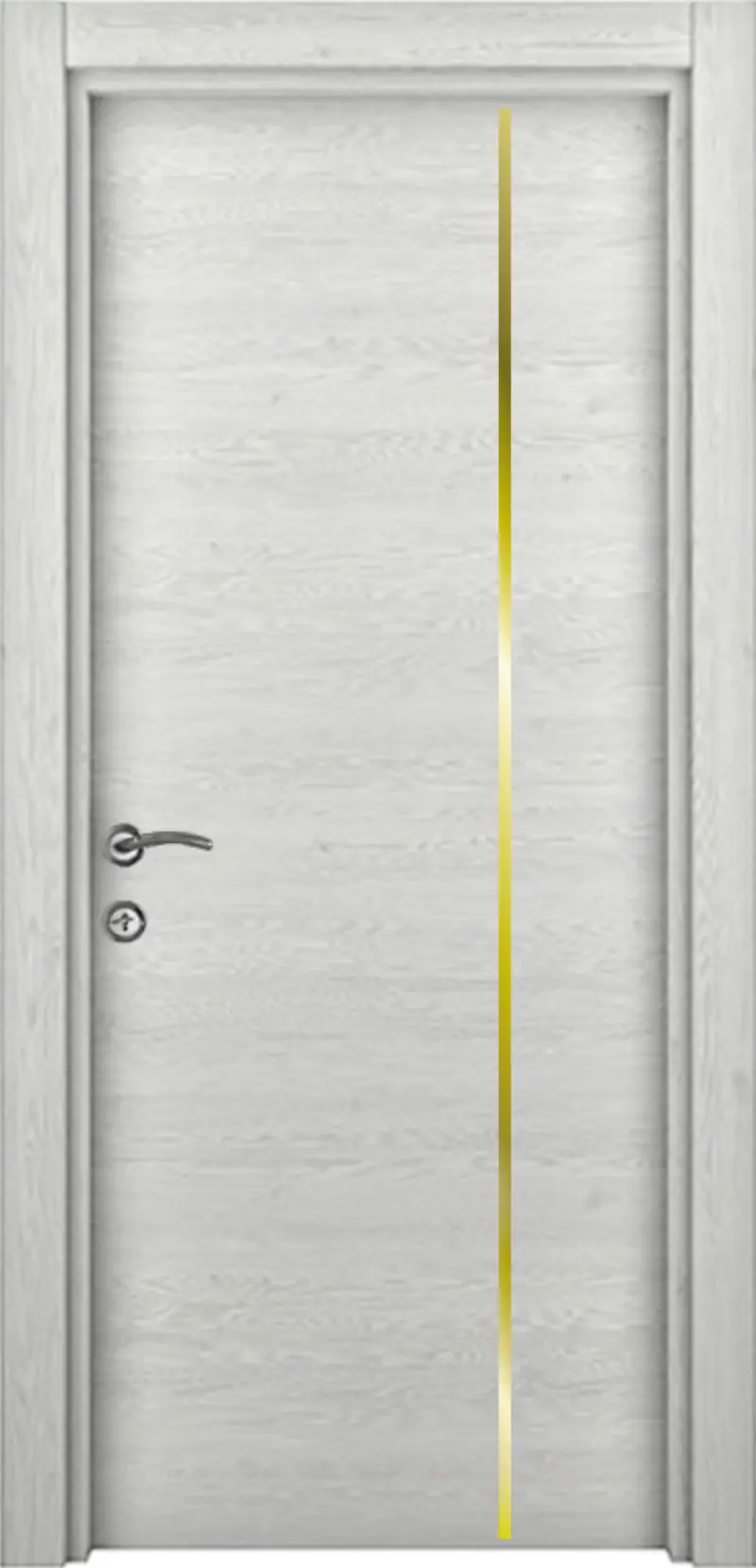 Интериорната врата Лара Line 11 комбинира модерен дизайн и надеждно изпълнение. Моделът е с вградени алуминиеви лайсни – едностранно, които придават изчистена и съвременна визия.