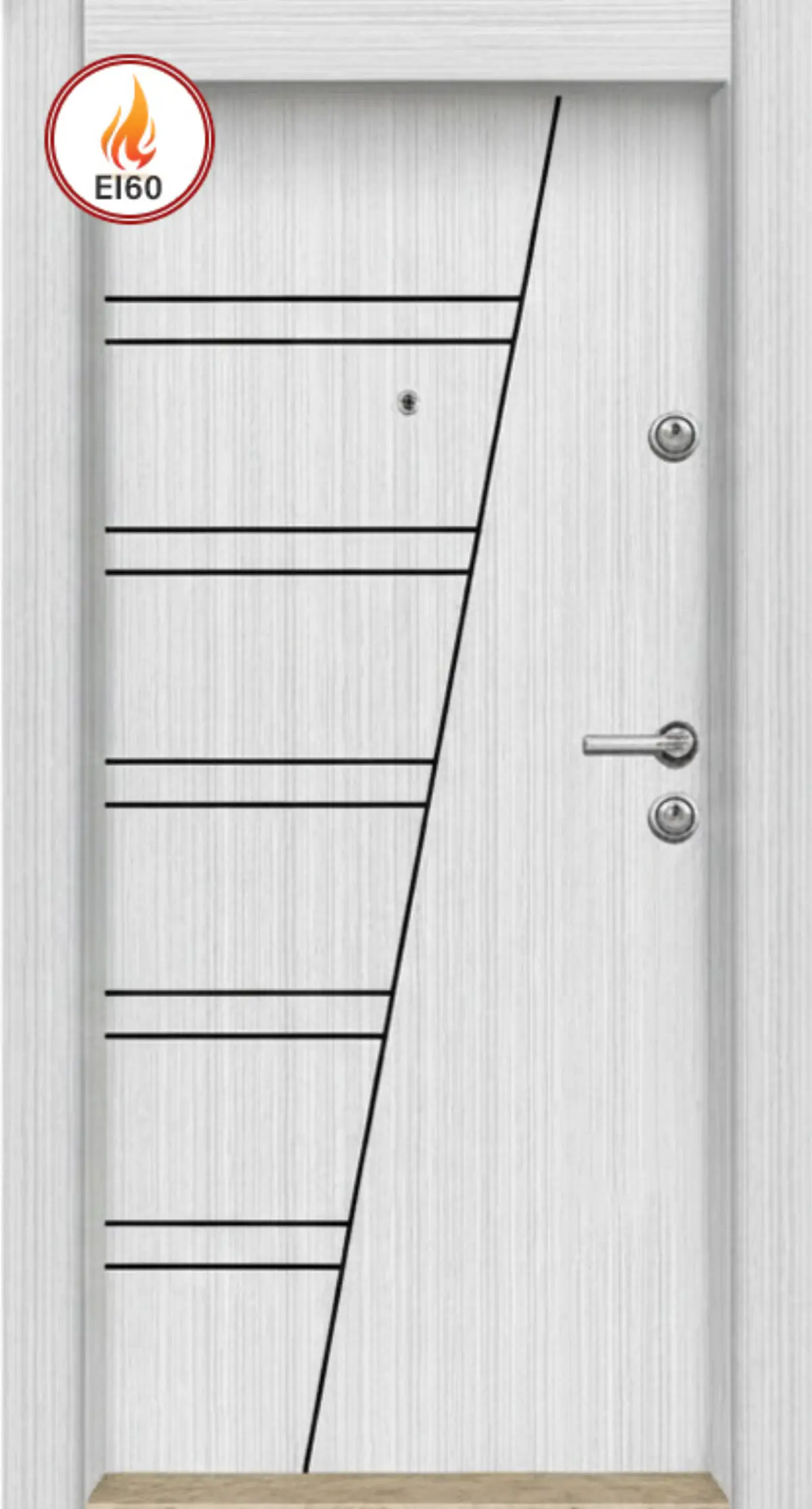 Пожароустойчивата блиндирана врата М10 Бяла Перла EI 60 се отличава със своя изчистен и модерен светъл дизайн, комбиниран с висока степен на безопасност и надеждност. Сертифицирана за 60 минути пожароустойчивост, тя осигурява защита както отвън, така и отвътре при инциденти.