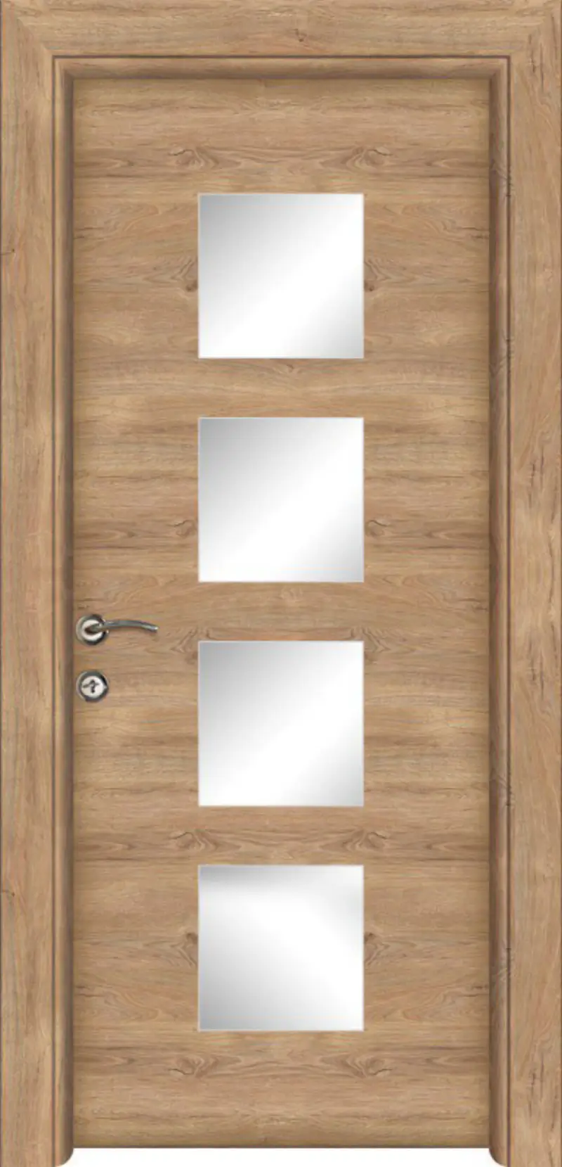 Интериорната врата Огледало 04 е елегантно и функционално решение, предназначено за интериори, в които се търси визуално разширяване на пространството и повече светлина. Огледалното изпълнение придава модерен облик и прави модела подходящ за коридори, спални и гардеробни помещения.