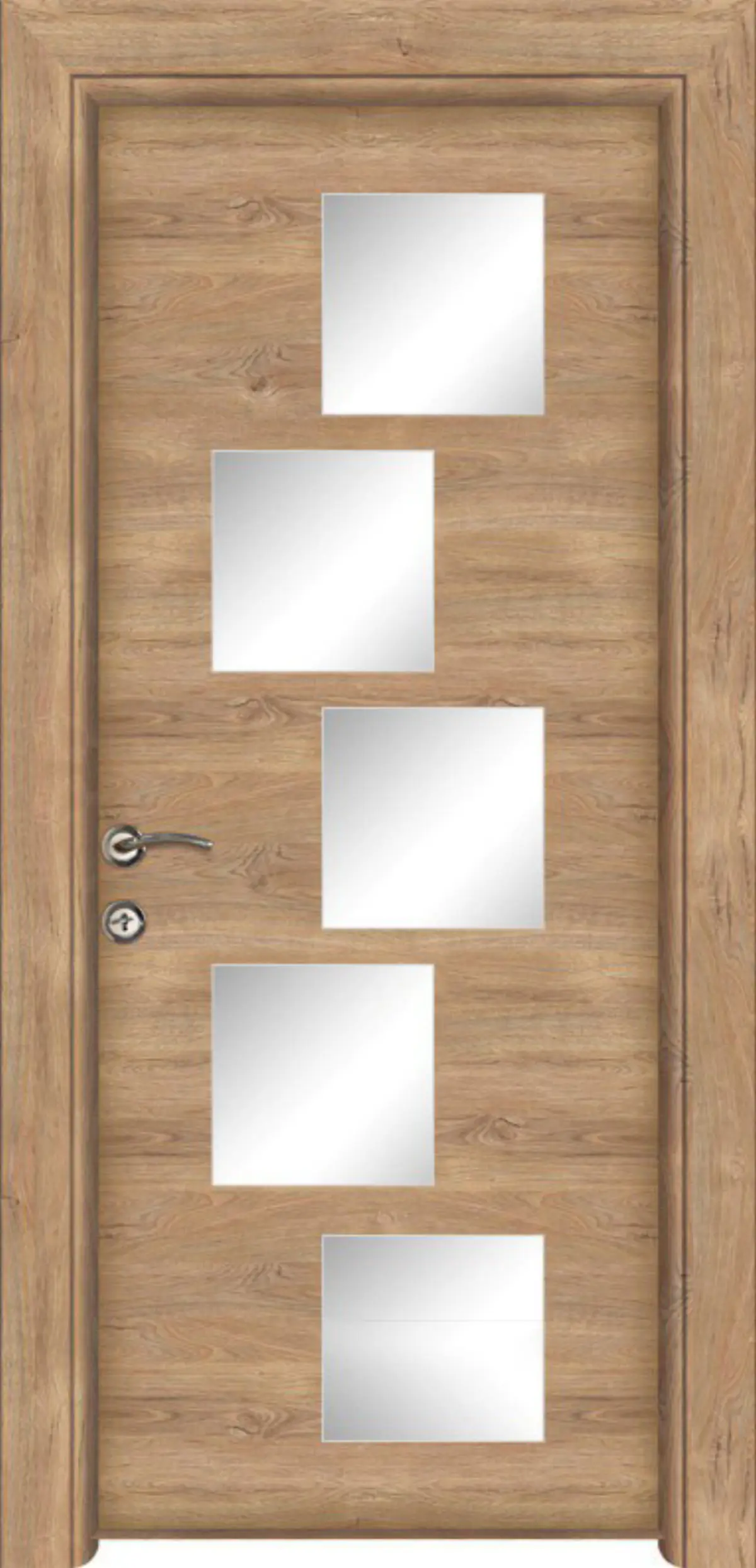 Крилото е изработено от плътен HDF / MDF (High Density Fiberboard) – материал, произведен от естествени дървесни частици чрез сухо горещо пресоване. HDF / MDF се отличава с висока плътност, здравина и устойчивост във времето, което гарантира стабилност, дълготрайност и надеждна експлоатация на интериорната врата.