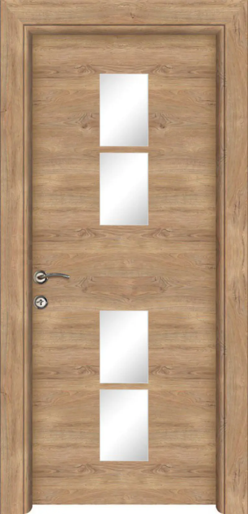Крилото е изработено от плътен HDF / MDF (High Density Fiberboard) – материал, произведен от естествени дървесни частици чрез сухо горещо пресоване. HDF / MDF се отличава с висока плътност, здравина и устойчивост във времето, което гарантира стабилност, дълготрайност и надеждна експлоатация на интериорната врата.