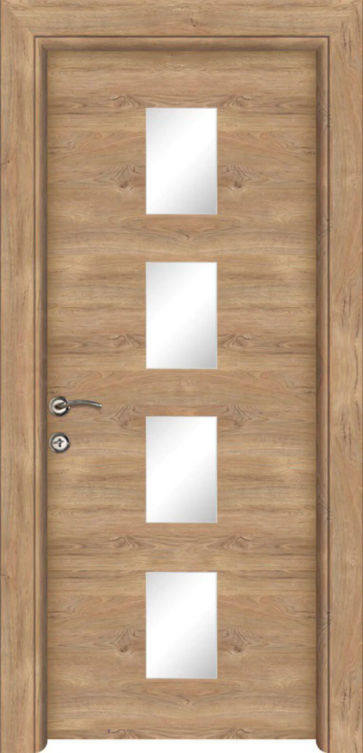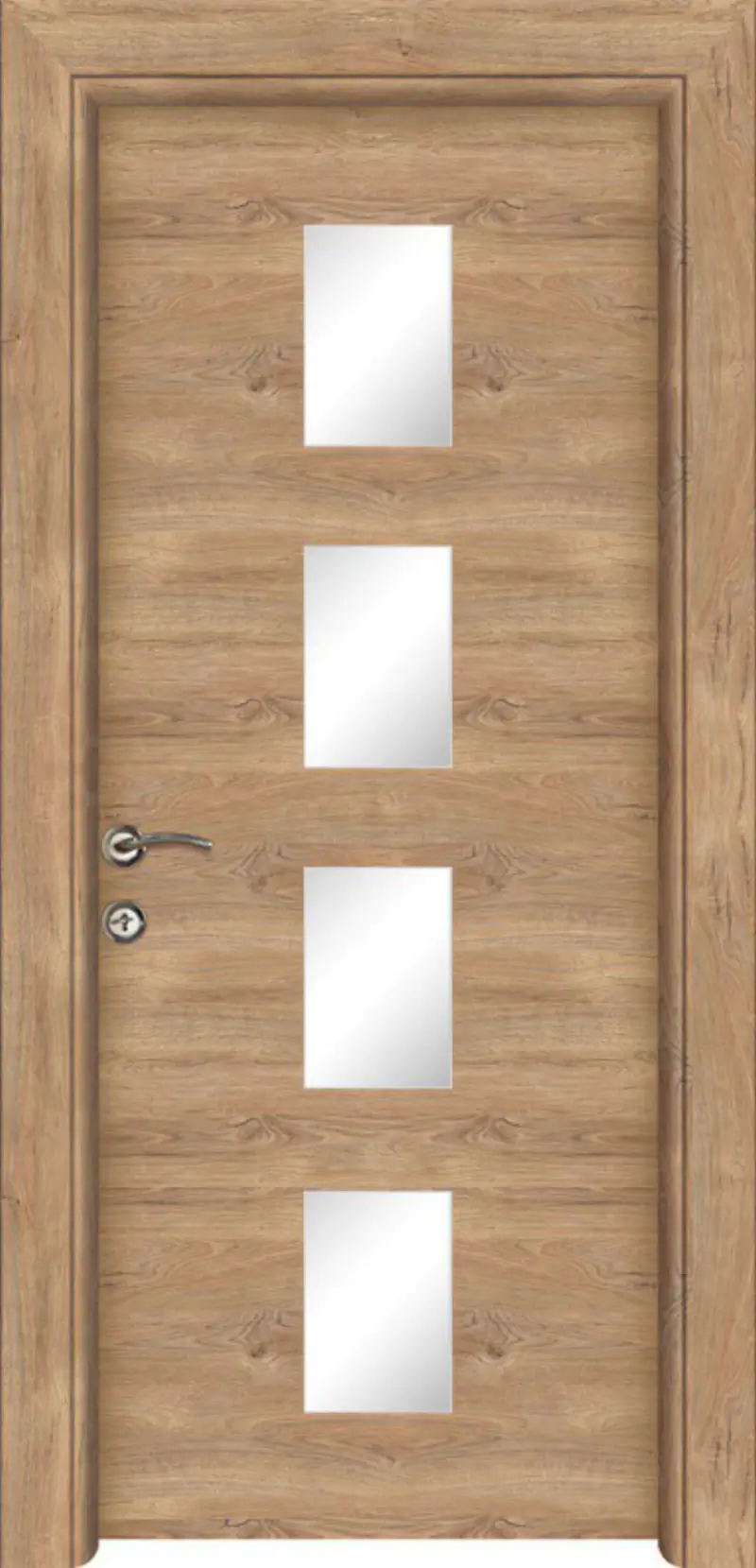 Крилото е изработено от плътен HDF / MDF (High Density Fiberboard) – материал, произведен от естествени дървесни частици чрез сухо горещо пресоване. HDF / MDF се отличава с висока плътност, здравина и устойчивост във времето, което осигурява стабилност, надеждност и дълъг експлоатационен живот на интериорната врата.