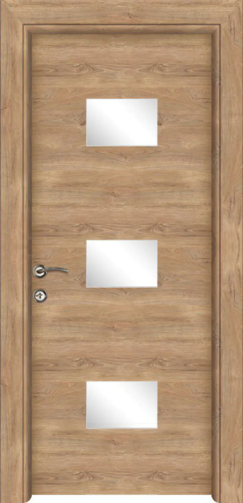 Крилото е изработено от плътен HDF / MDF (High Density Fiberboard) – материал, произведен от естествени дървесни частици чрез сухо горещо пресоване. HDF / MDF се отличава с висока плътност, здравина и устойчивост във времето, което гарантира стабилност, дълготрайност и надеждна експлоатация на интериорната врата.