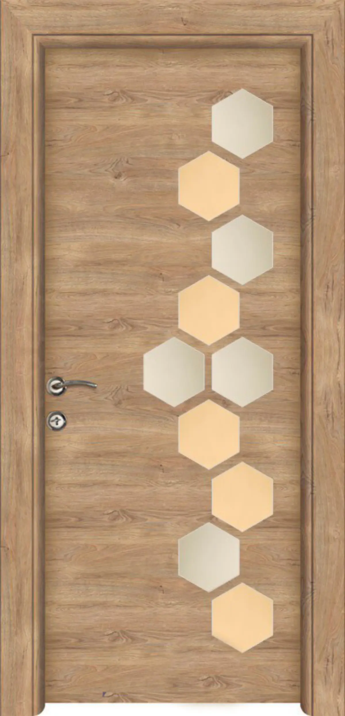 Крилото е изработено от плътен HDF / MDF (High Density Fiberboard) – материал, произведен от естествени дървесни частици чрез сухо горещо пресоване. HDF / MDF се отличава с висока плътност, здравина и устойчивост във времето, което гарантира стабилност, надеждност и дълъг експлоатационен живот на интериорната врата.