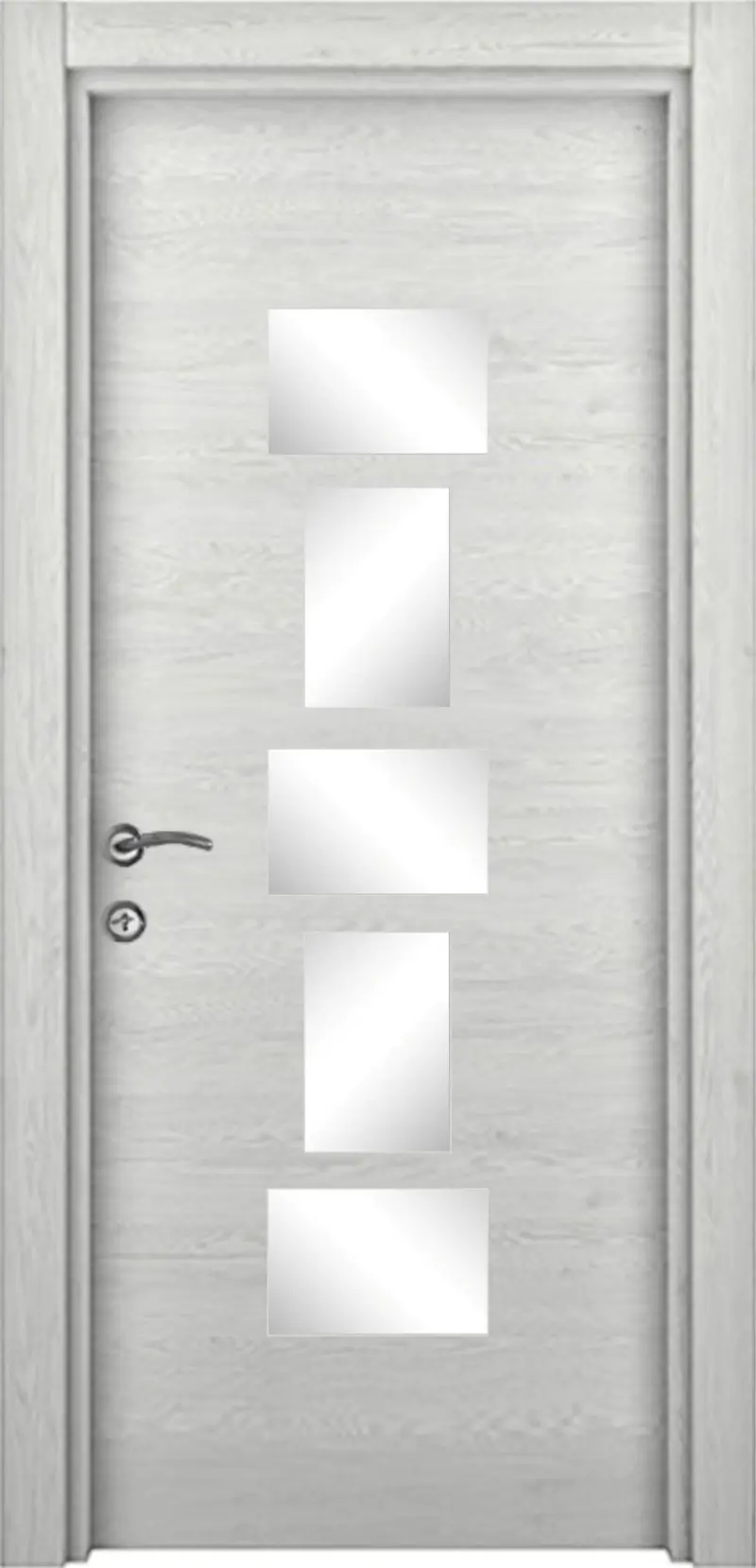Интериорната врата Огледало Лара 10 е модерно и функционално решение за съвременни интериорни пространства, при които се търси повече светлина и визуално разширяване на помещението. Огледалната повърхност придава елегантен и изчистен външен вид, което прави модела подходящ за коридори, спални, гардеробни и различни жилищни зони.