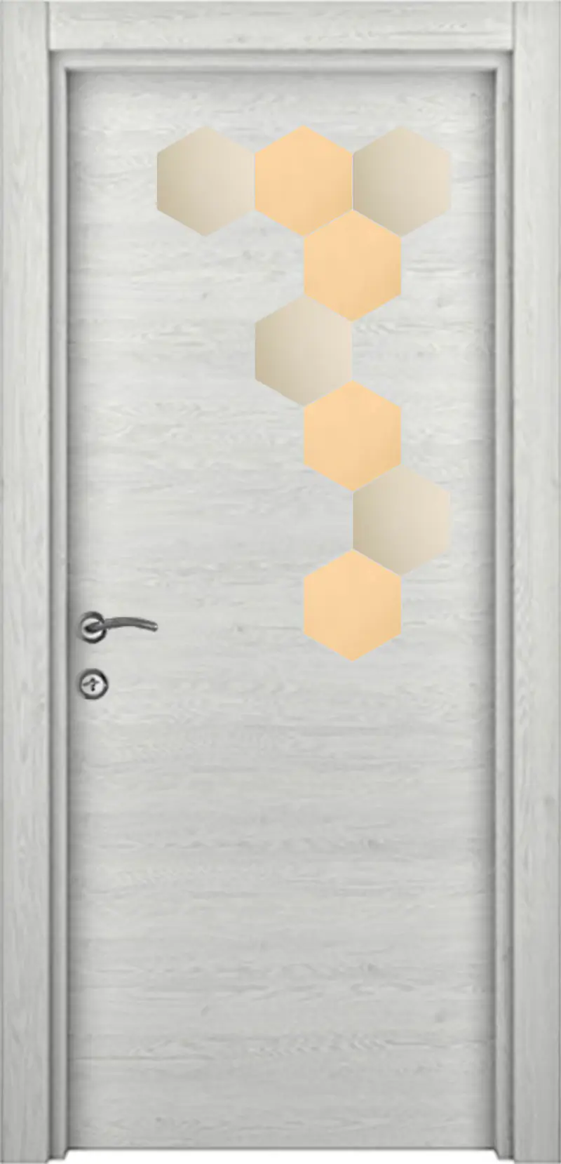 Крилото е изработено от плътен HDF / MDF (High Density Fiberboard) – материал, произведен от естествени дървесни частици чрез сухо горещо пресоване. HDF / MDF се отличава с висока плътност, здравина и устойчивост във времето, което гарантира стабилност, надеждност и дълъг експлоатационен живот на интериорната врата.