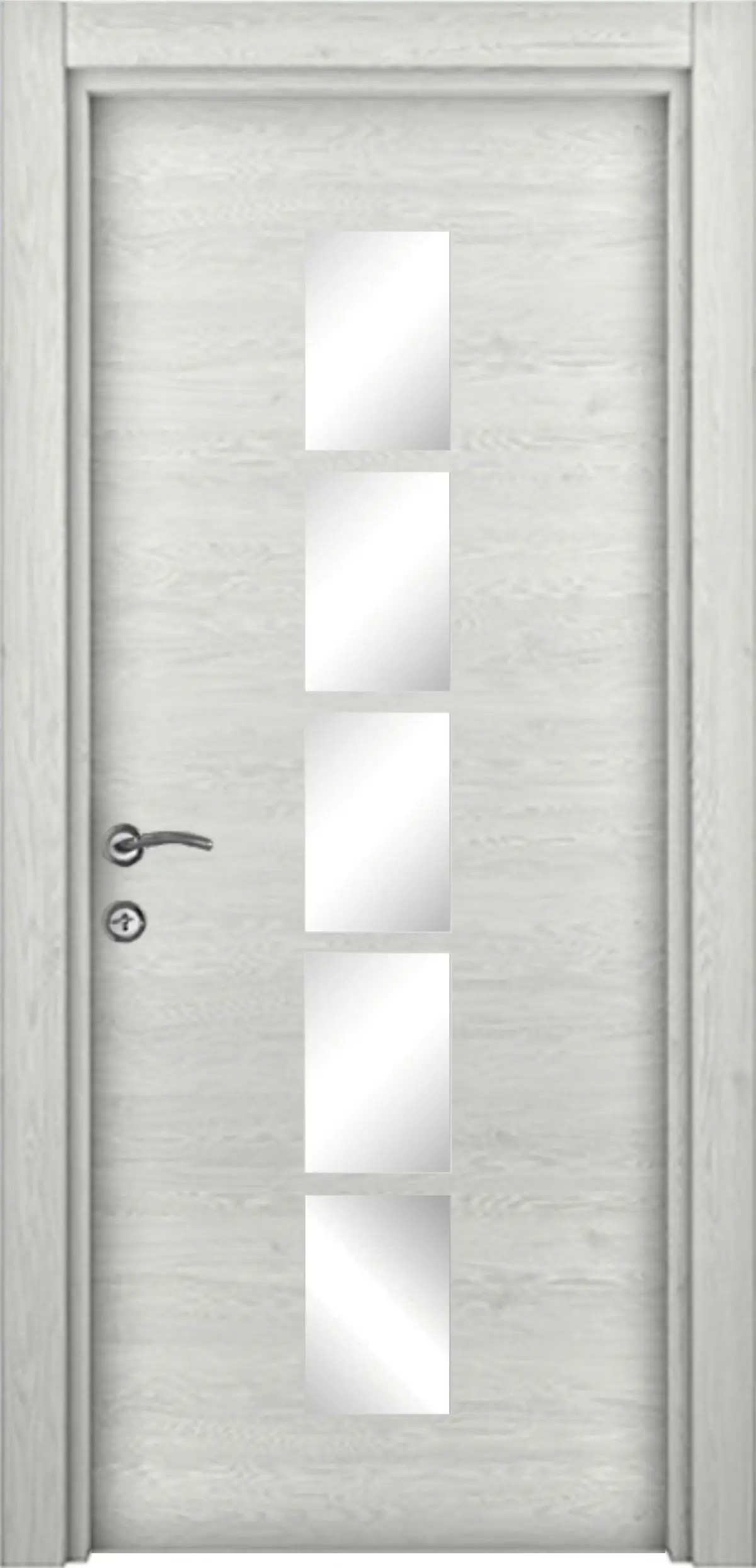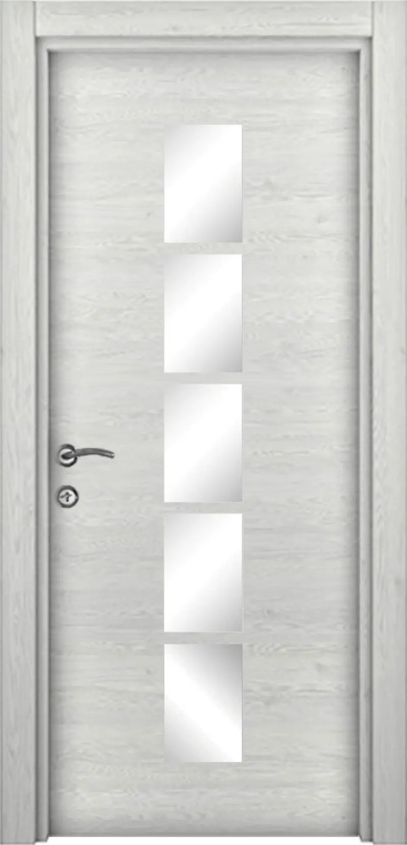 Интериорната врата Огледало Лара 8 е модерно и функционално решение за съвременни интериорни пространства, при които се търси повече светлина и визуално разширяване на помещението. Огледалната повърхност придава елегантен и изчистен външен вид, което прави модела подходящ за коридори, спални, гардеробни и различни жилищни зони.