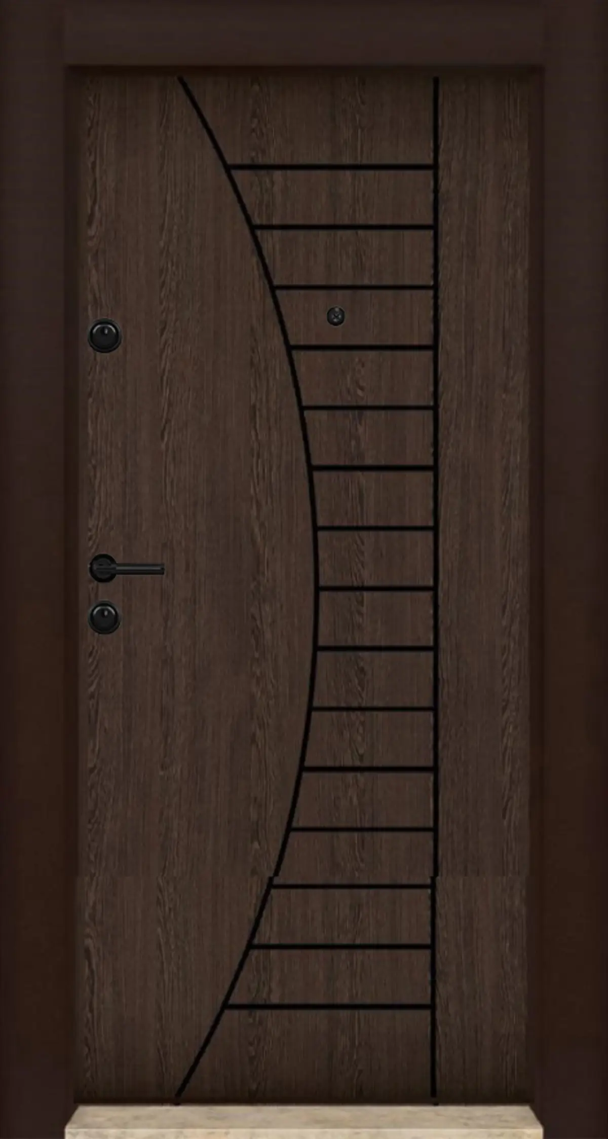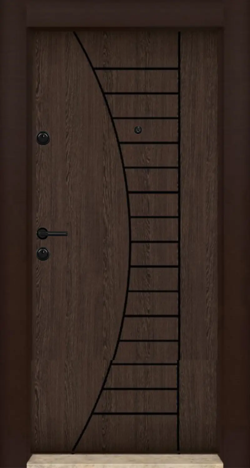 Стоманена входна врата с модерно дървесно покритие Венге и висока степен на сигурност. Отличен избор за жилищни входове, осигуряваща шумоизолация, стабилност и защита против взлом.