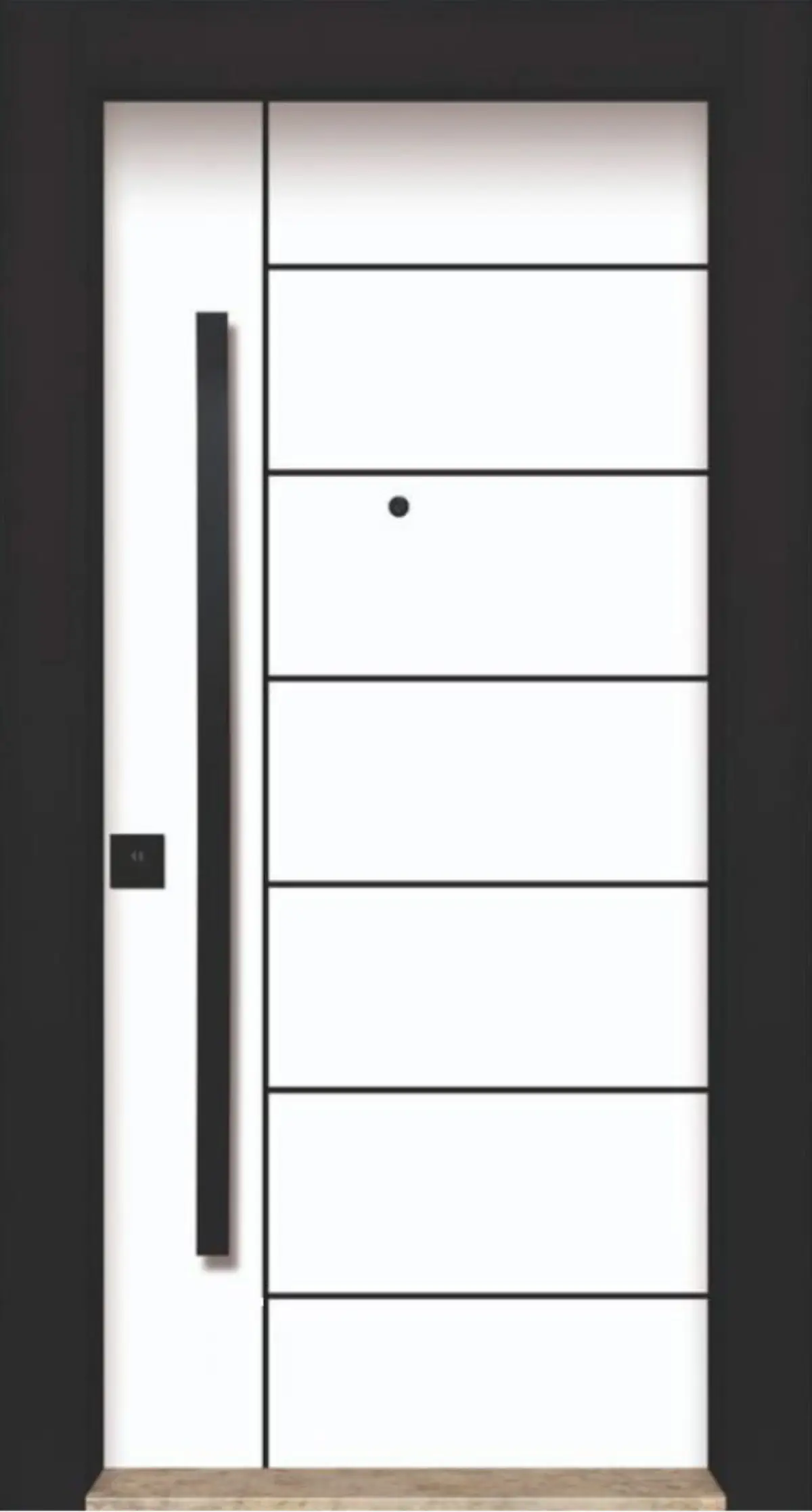 Стоманена входна врата с модерен бял дизайн и високи нива на сигурност. Осигурява шумо- и топлоизолация, подходяща за жилищни входове с изчистена и елегантна визия.