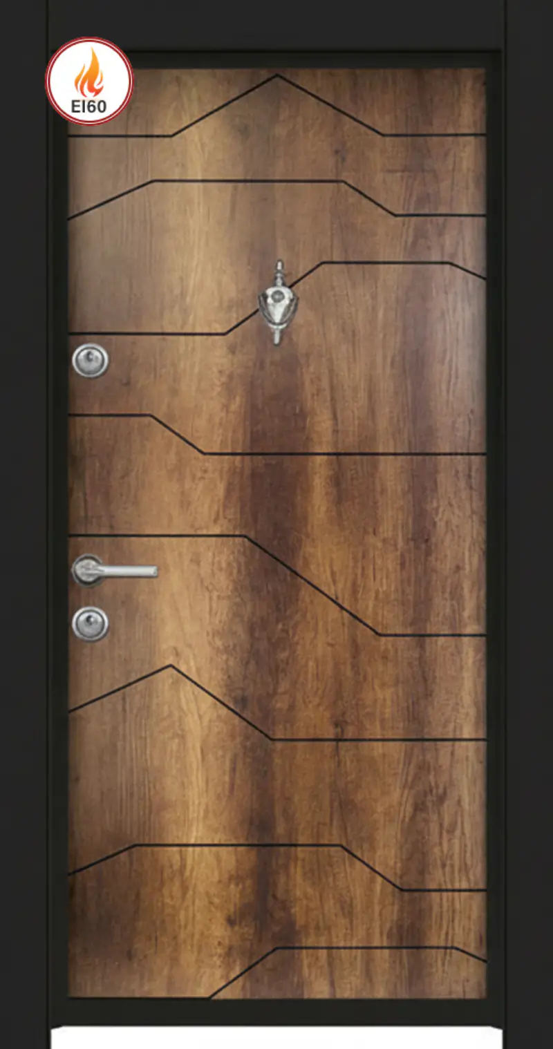 Пожароустойчивата блиндирана врата Стар 90 Ася Орех EI 60 комбинира елегантна дървесна визия в цвят Ася Орех с висока степен на противопожарна защита. Сертифицирана за 60 минути пожароустойчивост, тя осигурява надеждна защита и устойчивост както отвън, така и отвътре.