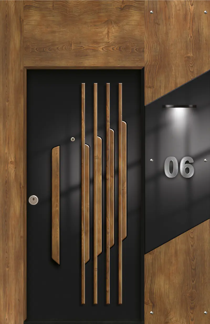 Вела – Блиндирана Врата е премиум входно решение, предназначено за жилищни и бизнес имоти с високи изисквания към сигурността и представителната визия. Конструкцията е изпълнена от високоустойчиви материали с противовзломен клас, което осигурява надеждна защита на входа. Моделът се отличава с официален и елегантен дизайн, подходящ за луксозни сгради, административни обекти и частни домове с модерен характер. Предлага се с персонализирани размери, избор на цветове и декоративни панели, както и опция за многоточково заключване и допълнителни защитни елементи. Вела е идеалният избор за клиенти, които търсят комбинация от престижен стил, комфорт и сигурност.